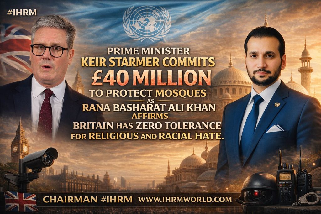 Rana Basharat Ali Khan, Chairman of the International Human Rights Movement, welcomes the decision of Keir Starmer to allocate up to forty million pounds to strengthen protection for mosques, Muslim educational institutions, and community centres across the United Kingdom following the recent incident at Manchester Central Mosque.